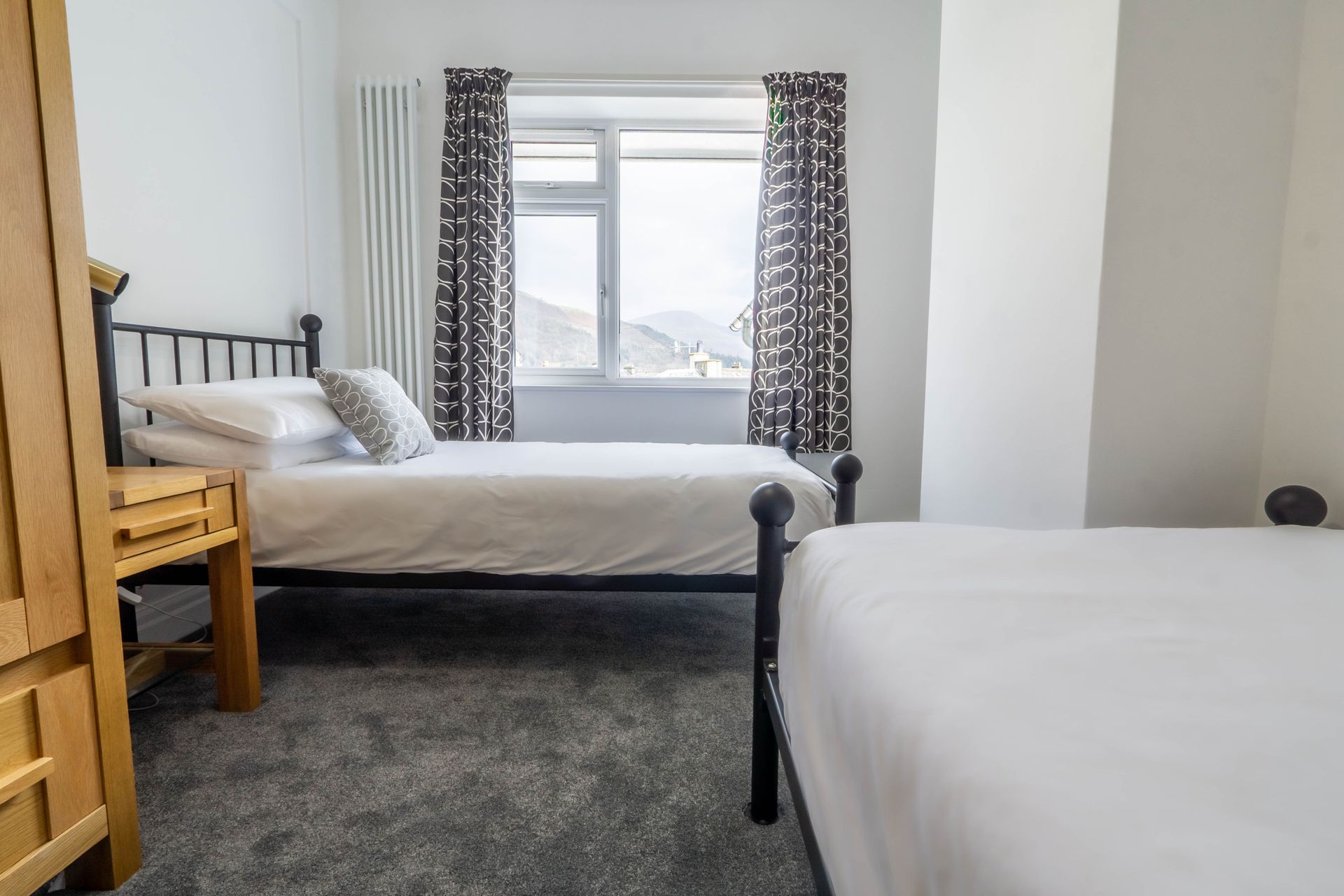 The warm and comfortable accommodation sleeps up to four guests (plus a cot) and was recently extensively refurbished. Downstairs features a heated porch, a spacious living and dining area and a well-equipped kitchen. Upstairs are two bedrooms: a double bedroom adjacent to a large bathroom with both shower and bath facilities, and a twin room with an ensuite toilet. Both bedrooms and the living room provide views of the local fells (Skiddaw, Latrigg and Blencathra).
